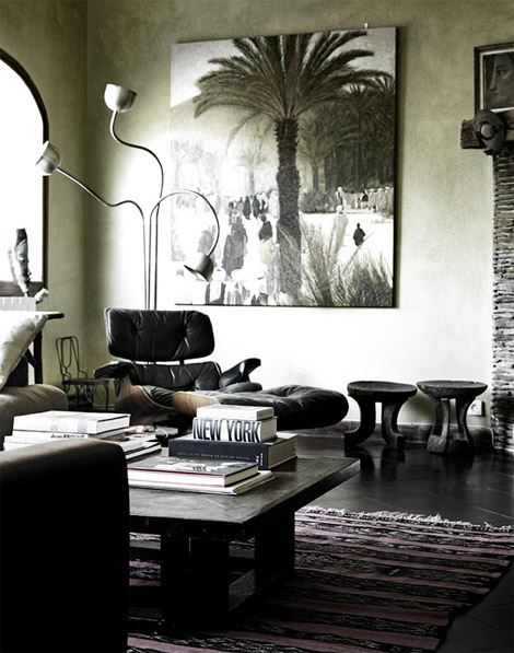 Olohuoneeseen on sijoitettu Eamesin klassikkokeinutuoli RAR ja pöydällä on kaunis asetelma Iittalan Kivi-tuikkuja.
