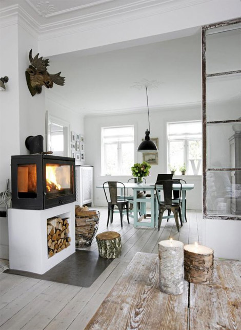 Ja näkymä olohuoneen puolelta. Kuvat ovat ruotsalaisen Sköna Hem sisustuslehden joulunumerosta. Kyseinen lehti pitää usein sisällään valloittavia ja kauniita koteja, joten kannattaa tutustua ja hankkia omansa lehtihyllyltä.